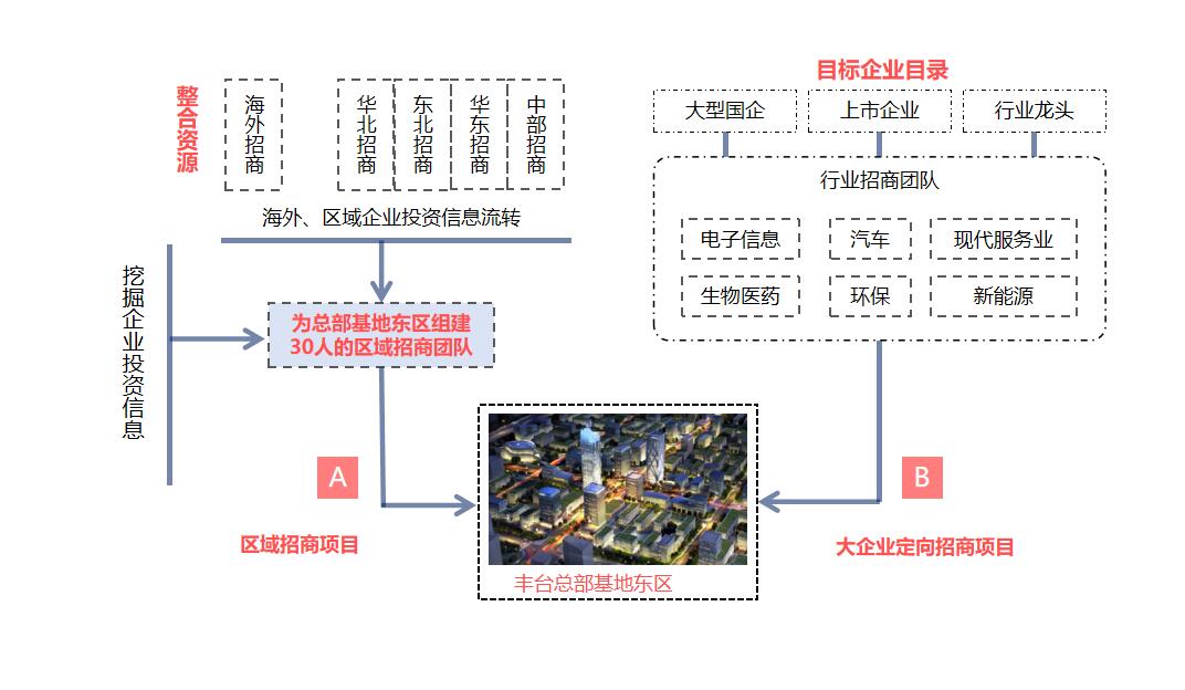 项目位于北京市丰台区总部基地。方案坚持创新驱动,打造科技创新高地,制定科技创新行动指导意见,完善创新生态政策体系,促进3项重大科技成果落地,积极打造“创新性孵化器”。为总部基地项目建立专业团队,加强资源整合能力。构建六大体系,确保总部基地招商引资能力。