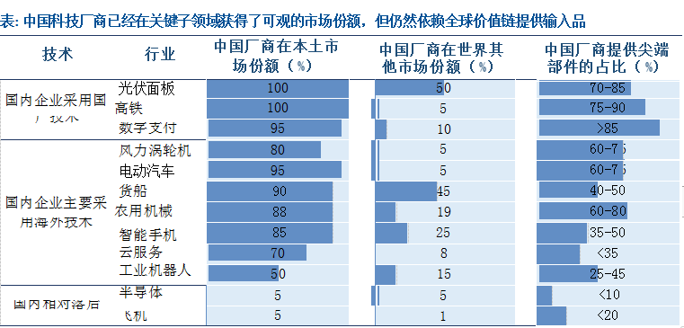 产业链全球化行业未来面临上游供应链缺货+全球需求疲软风险组合。中国在电子、机械和设备领域已经全面融入全球价值链。在全球分工细致、深度贸易整合领域中,中国既是供应方,又是核心消费者。据麦肯锡统计,在电子、机械设备领域中国占全球出口总额的17%~28%,占全球进口总额的9%~16%,在全球产出中的占比高达38%~42%。随着中国对全球科技价值链的融入,本土厂商已经在智能手机等领域获得了可观的市场份额,但仍然依赖全球提供中间品输入,如以集成电路和光学设备为例,我国进口额约为国内产值的5倍。