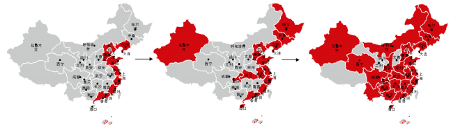 (左图:1984-1990年;中图:1990-1998年;右图:1998-200年)