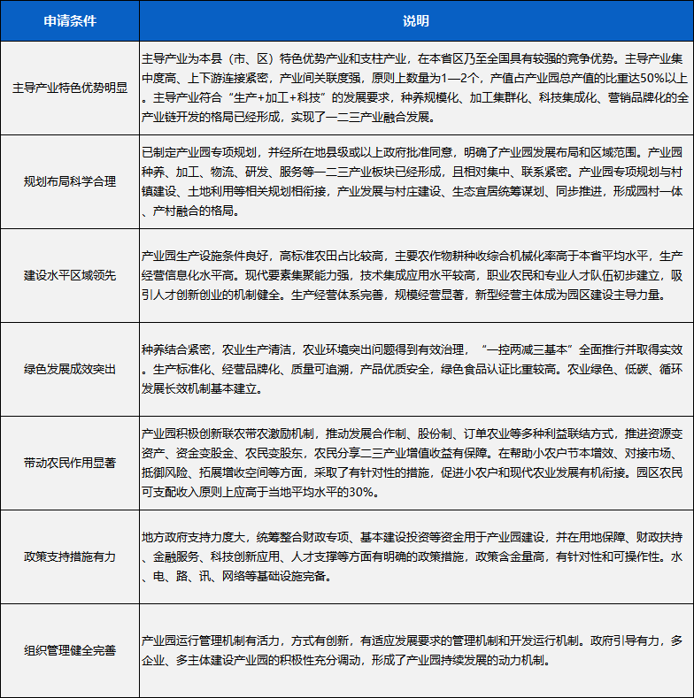 1、现代农业产业园创建条件